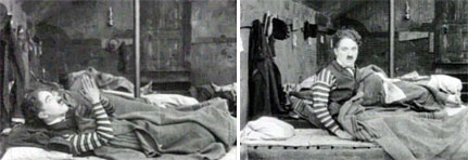 But Charlie bit off more than he could chew. Life ended up as a brief series of flop house shots of a grimy urban underworld populated with tubercular patients, alcoholics, social misfits, stick-up artists, pickpockets, homeless mentally ill and dementia victims. Hardly the subject matter of traditional slapstick comedy - this rogues' gallery of social outsiders harkened back to young Charlie's workhouse, poorhouse, flop house and orphanage experiences. Like his all-time favorite author Charles Dickens' novel Oliver Twist, Chaplin wanted his opus ( Life) to pose the question: Who are the real criminals?